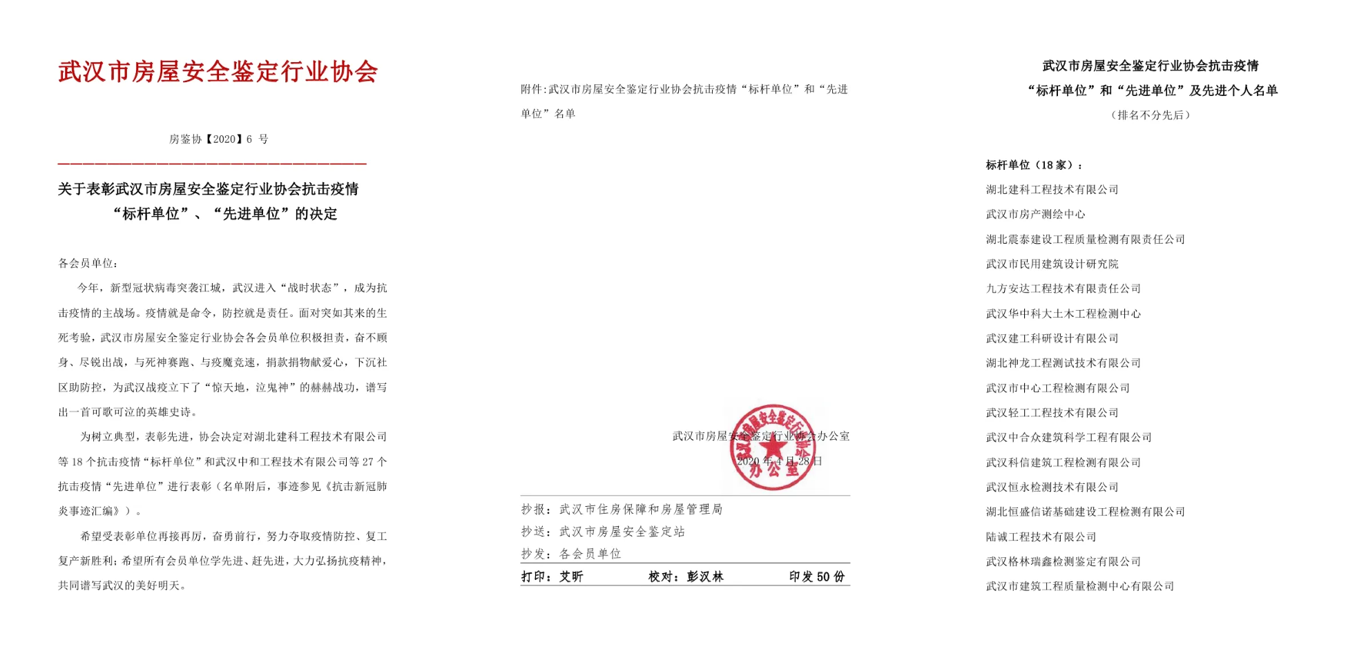 武漢市房屋安全鑒定行業(yè)協(xié)會對標桿單位進行表彰